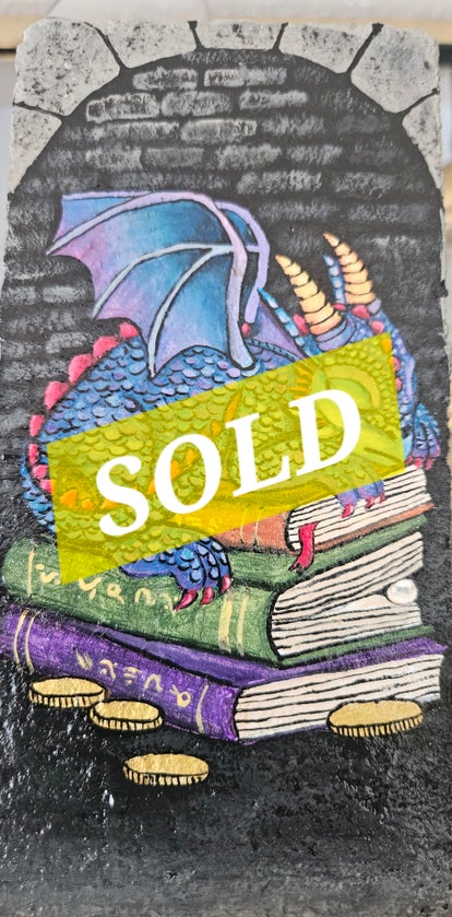 This dragon understands the value of the printed word and keeps a stack of books as part of his treasure hoard. This would make a great bookend!